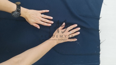 Для усиления места входа в карман, для стабилизации края и удобства работы, на передних половинках брюк вход в карман (отрезанный под карман край) необходимо проклеить нитепрошивной клеевой. Можно использовать долевик или же клеевую по косой. Причем если вход в карман не прямой, а вогнутый, то тогда стоит использовать только клеевую по косой.