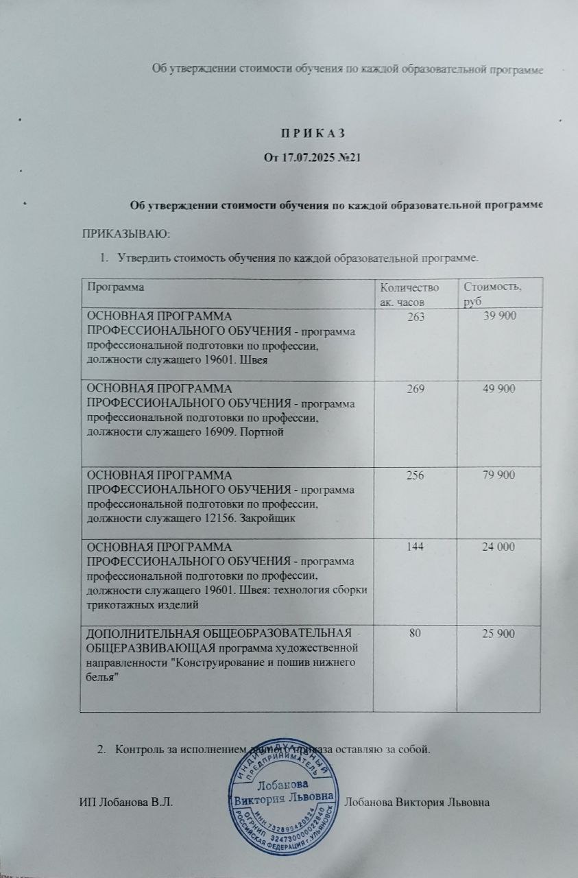 | Сокращенное наименование образовательной организации | ИП Лобанова В Л |